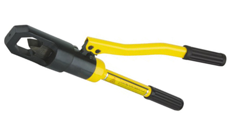 3、 將回油開關關緊,然后扳動活動手柄,使柱塞泵開始工作,使油壓上升,大活塞將刀刃推進進入工作,會發出“啪”的一聲即可。